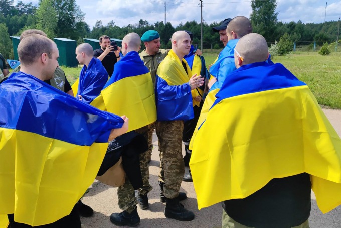 Các tù binh Ukraine được trao trả tại một địa điểm không tiết lộ vào ngày 9/6. Ảnh: AFP