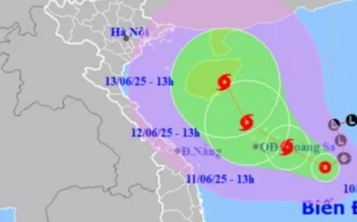 Dự báo khoảng 13h ngày 11/6, tâm áp thấp nhiệt đới trên khu vực phía Đông quần đảo Hoàng Sa, khả năng mạnh lên thành cơn bão số 1 trên Biển Đông.