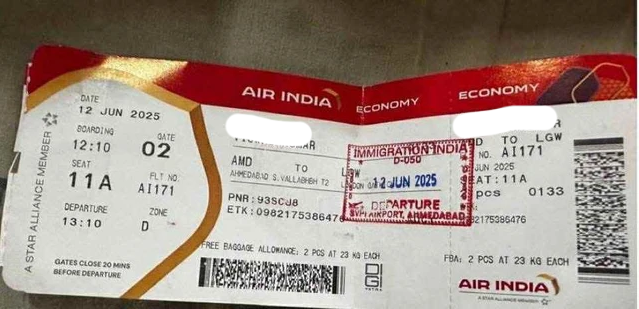 Old  Default Hé lộ tấm vé của nạn nhân ngồi ghế 11A - người được cho là duy nhất sống sót trên máy bay Ấn Độ vừa rơi