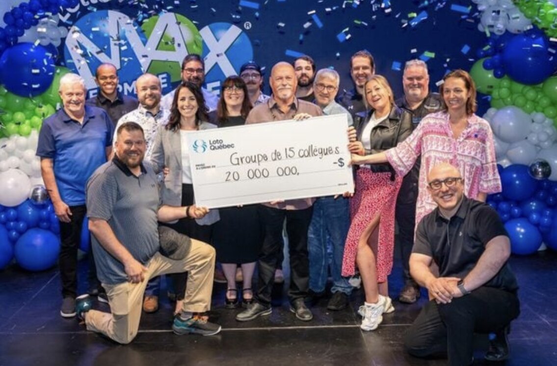 15 nhân viên của một đại lý bán ô tô ở thành phố Trois‑Rivières, tỉnh Québec, Canada vừa trúng giải xổ số độc đắc Lotto Max trị giá 20 triệu USD (khoảng 520 tỷ đồng). Trước đó, họ từng nhiều lần góp tiền để mua chung vé số và may mắn đã tới vào phiên quay thưởng ngày 3/6.