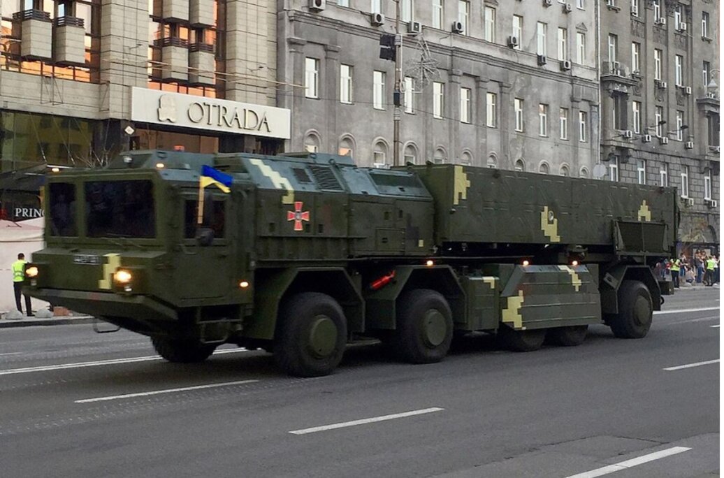 Nguyên mẫu hệ thống tên lửa Sapsan tại cuộc diễu hành ở Kiev năm 2018. Ảnh: wikimedia