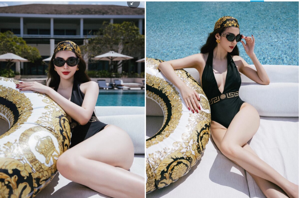 Ngọc Loan "thả dáng" bên hồ bơi của một resort sang trọng. Người đẹp diện mẫu áo tắm của Versace với điểm nhấn xẻ sâu phần ngực. Cô cũng check-in ở những địa điểm nổi tiếng tại nhiều quốc gia trên thế giới.