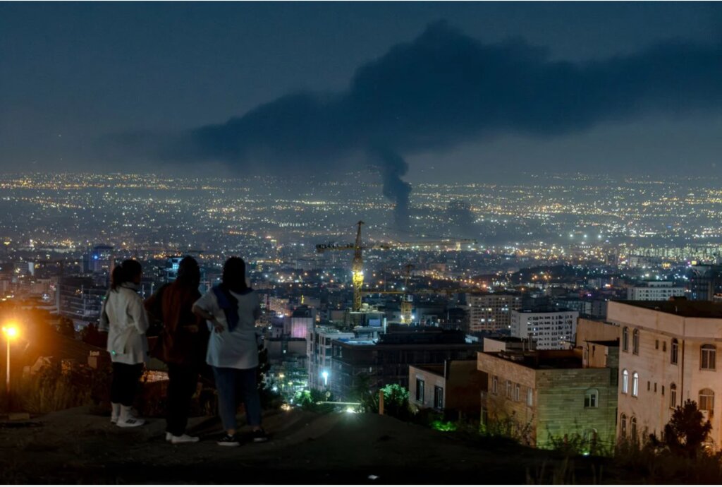 Người dân xem khói bốc lên từ cuộc không kích của Israel tại Tehran, Iran vào thứ Bảy. Ảnh Getty Images