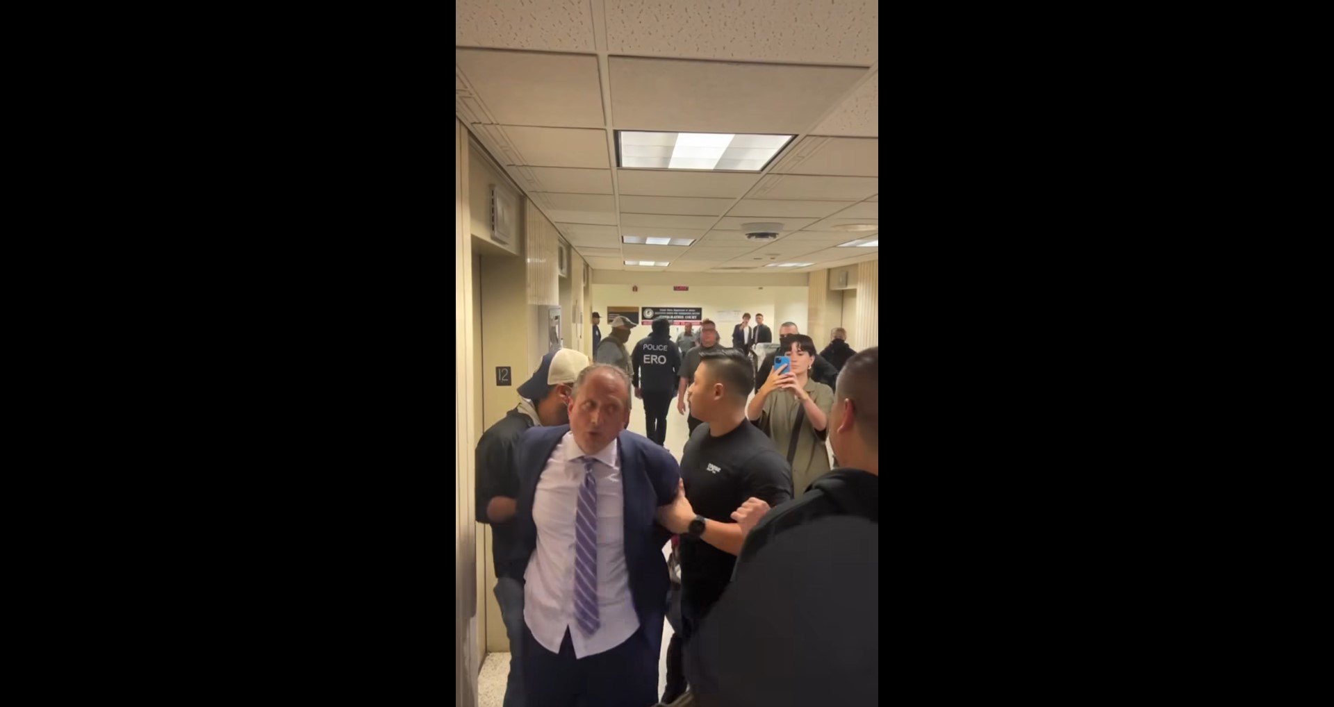 Ông Brad Lander bị nhân viên đặc vụ liên bang bắt giữ tại tòa án di trú ở thành phố New York hôm thứ Ba, 17/6/25. (Ảnh: Facebook Brad Lander)