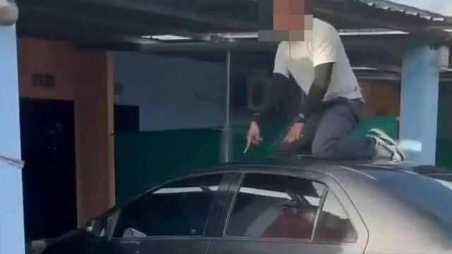 Anh Daen đã leo lên nóc chiếc ô tô, bên trong là vợ anh và nhân tình.
