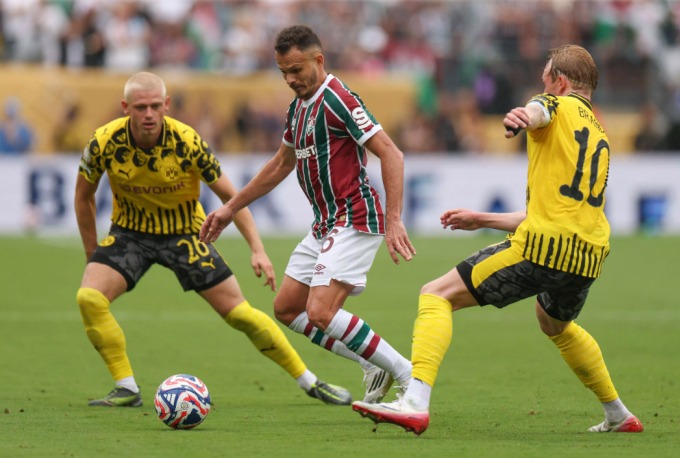 Cầu thủ Fluminese (giữa) đi bóng trong trận hòa Dortmund 0-0 ở trận ra quân vòng bảng FIFA Club World Cup 2025, ngày 16/6/2025 trên sân MetLife, Mỹ. Ảnh: AFP