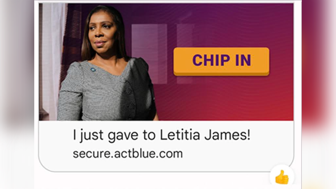 Lời kêu gọi gây quỹ gần đây của chiến dịch Letitia James được nhắn tin trực tiếp tới hàng nghìn người dân New York minh họa rõ ràng cho chiến lược này.