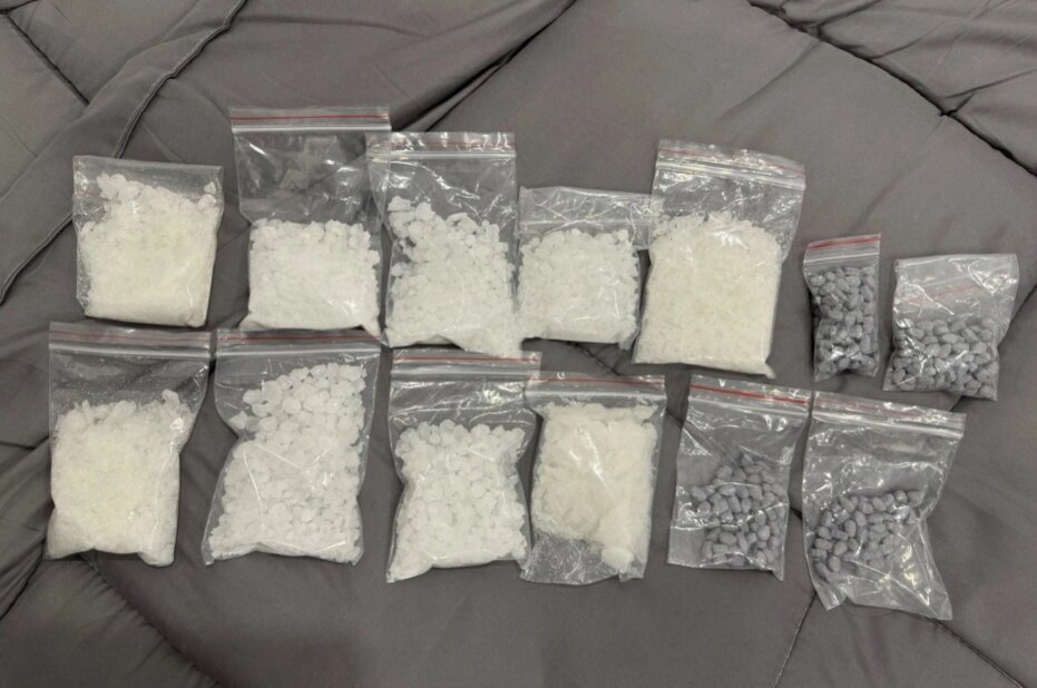 Tại hiện trường, lực lượng chức năng bắt quả tang 4 đối tượng, cả 4 đều dương tính với chất ma túy. Tang vật thu giữ gồm 1,43kg ma túy tổng hợp, 7 điện thoại di động, 1 khẩu súng, 5 viên đạn cùng một số tang vật liên quan.