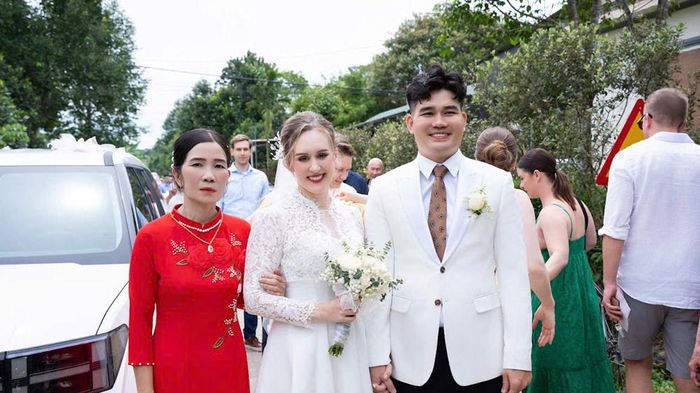 Hình ảnh cô dâu ngoại quốc giữa không gian cưới truyền thống của người Việt khiến nhiều người thích thú. Nhan sắc xinh đẹp của cô dâu cũng nhận được “cơn mưa” lời khen từ dân mạng.