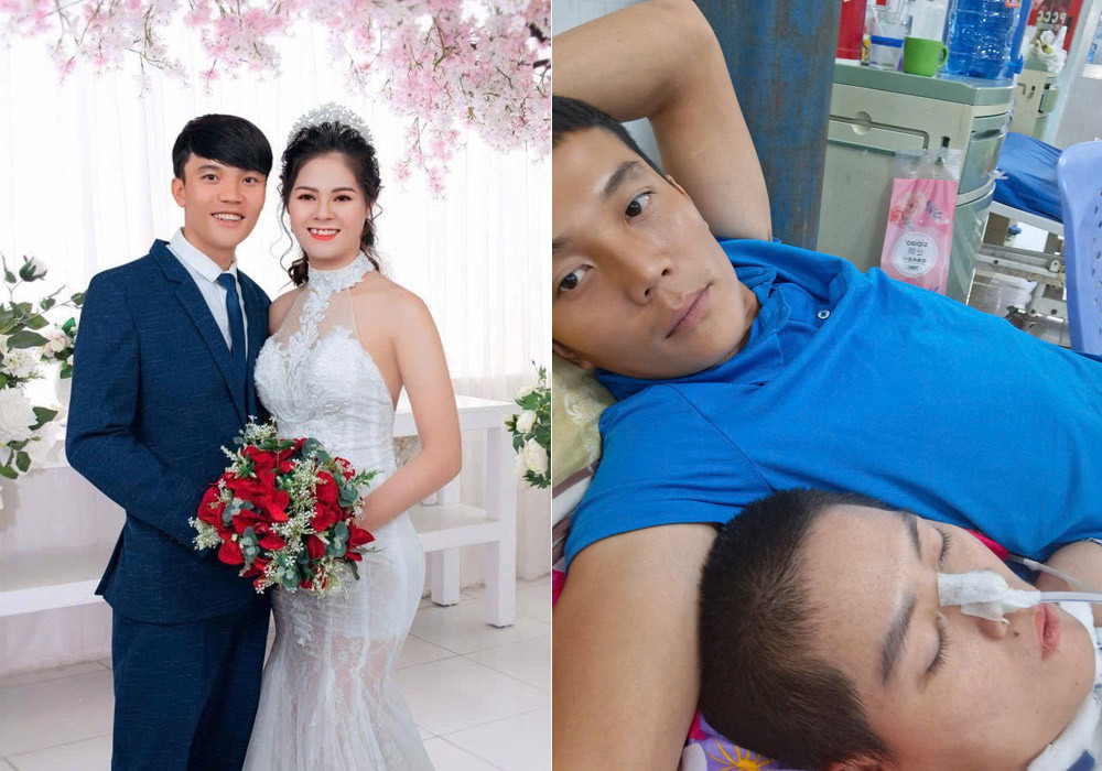 Gửi con cho bố mẹ trông giúp, B́nh đưa vợ đi khám và điều trị ở khắp các bệnh viện lớn, nhỏ. Sau khi phẫu thuật loại bỏ khối u tại bệnh viện ở TPHCM, vợ anh bị liệt, phải nằm một chỗ và được chuyển về bệnh viện tỉnh để gia đ́nh tiện chăm sóc.