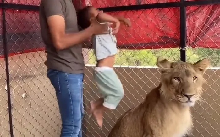 Theo như cộng đồng mạng mới đây chỉ trích gay gắt về hành động của người cha cố chấp thực hiện hành vi đầy nguy hiểm này – điều mà nhiều cư dân mạng gọi thẳng là “bạo hành trẻ em và ngược đãi động vật cùng lúc”. Trong đoạn clip, người đàn ông liên tục giữ chặt đứa con trai đang hoảng loạn và gào khóc, buộc em bé ngồi lên lưng một con sư tử cái.
