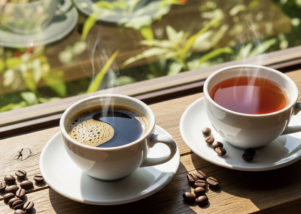 Caffeine trong cà phê hoặc trà có thể chống lại lão hóa ở cấp độ tế bào - Minh họa AI: Thu Anh