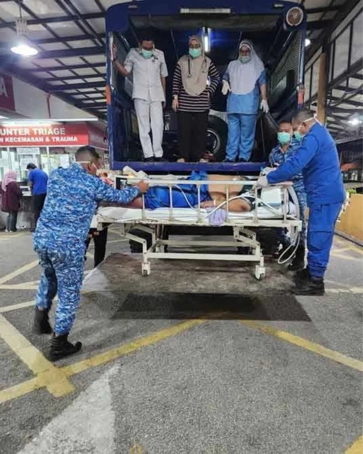 Nhờ sự hợp tác ăn ý giữa hai đơn vị, quá trình chuyển viện đã diễn ra thuận lợi mà không gặp bất kỳ sự cố nào. (Ảnh: Sinar Harian)
