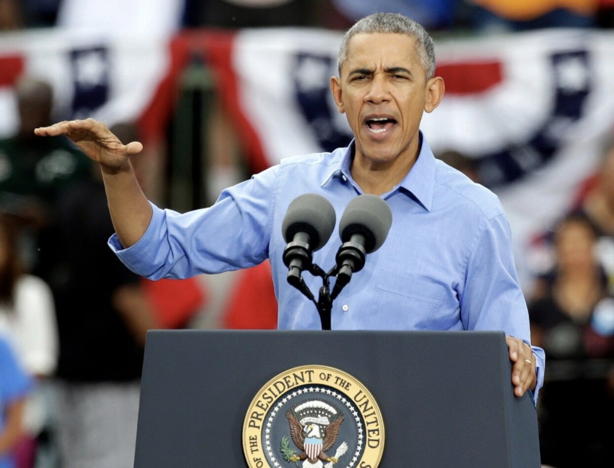 Ông Barack Obama tại cuộc vận động tranh cử năm 2016 cho ứng cử viên tổng thống đảng Dân chủ lúc bấy giờ là bà Hillary Clinton ở Florida.