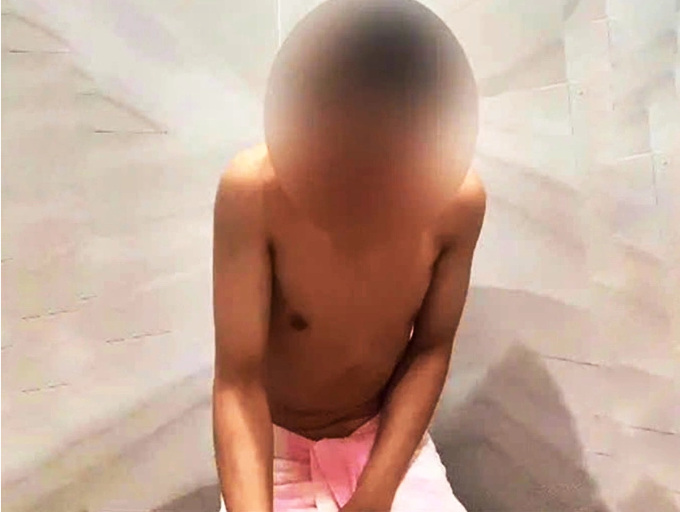 Hình ảnh nam sinh tự tra tấn để bọn tội phạm quay video tống tiền gia đình. Ảnh: Công an cung cấp