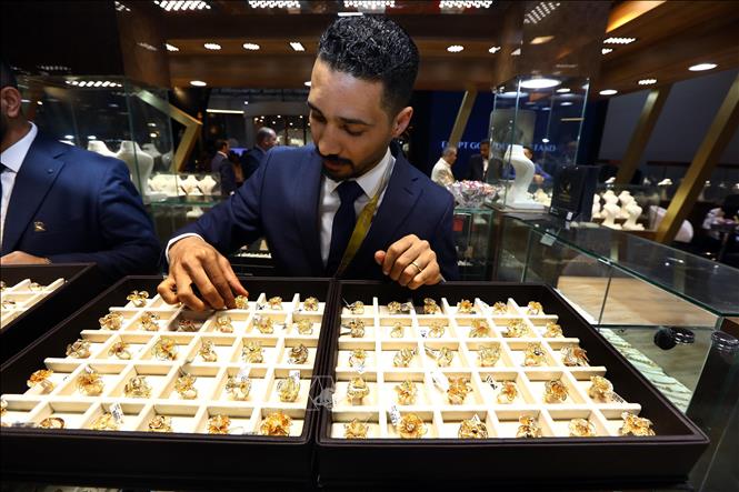 Trang sức vàng được trưng bày tại triển lãm ở Cairo, Ai Cập.