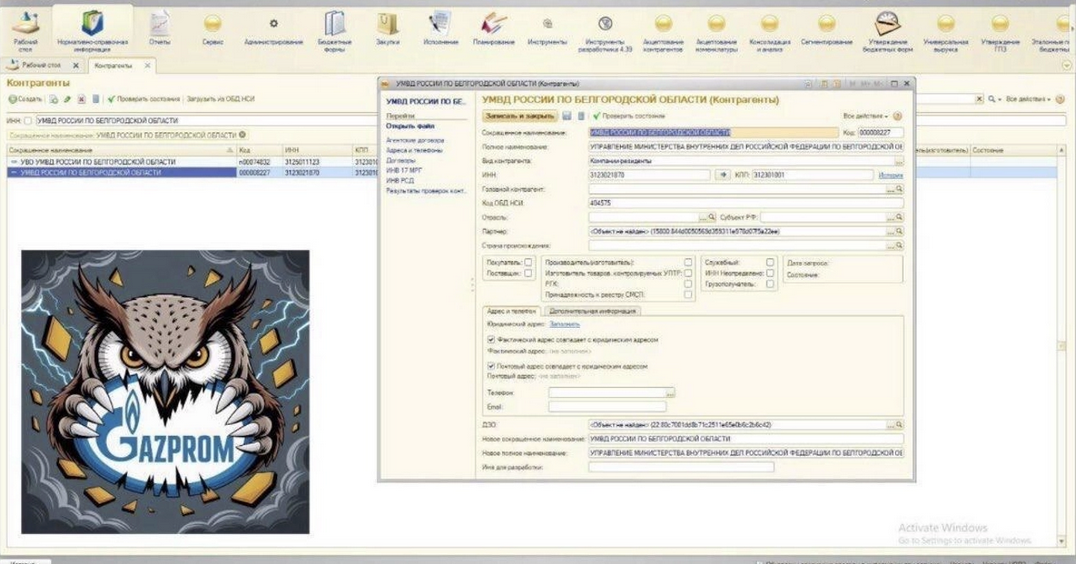 - Cơ sở dữ liệu của khoảng 390 công ty con và chi nhánh, bao gồm Gazprom Teplo Energo, Gazprom Obl Energo, Gazprom Energozbyt và hàng trăm cấu trúc khác;