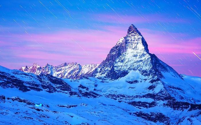 1. Matterhorn cao 4.478 mét và nằm giữa Thụy Sĩ và Ý. Ngọn núi tọa lạc trên biên giới hai nước, với phần đỉnh nằm hoàn toàn trong lãnh thổ Thụy Sĩ. Ảnh: Pinterest.