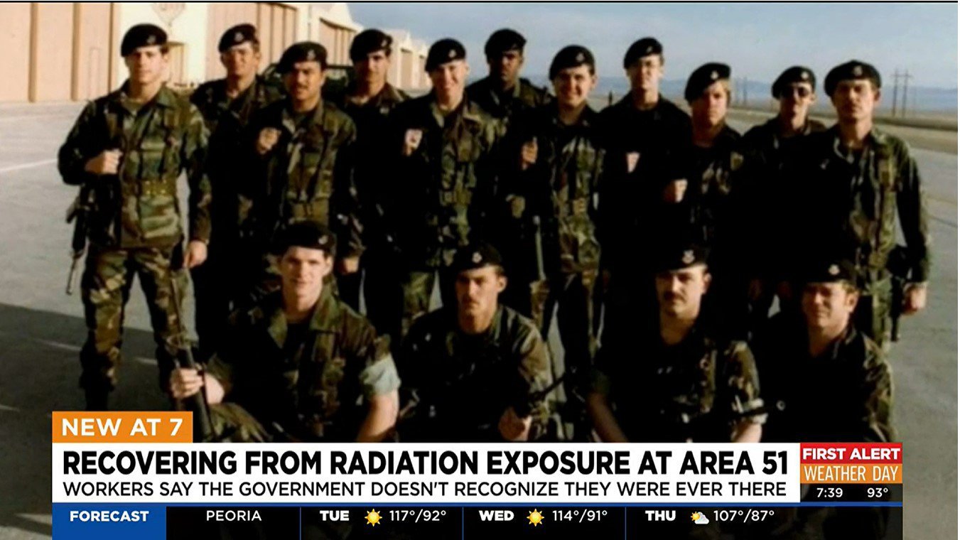 Theo lời các cựu binh, những nhân viên an ninh tại Trung tâm Thử nghiệm và Huấn luyện Nevada (NTTR) – nơi đặt căn cứ nổi tiếng là Khu vực 51 – thực tế đã bị “kết án tử hình” bởi chính phủ Mỹ, do phải làm việc trong khu vực nhiễm phóng xạ nhưng không được cảnh báo hay bảo vệ.
