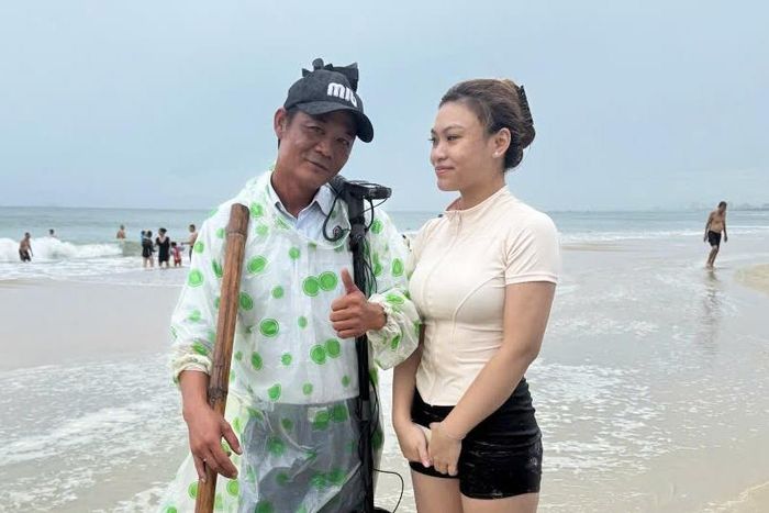 "Dù mưa to, gió lớn, anh Trinh vẫn không ngại khó khăn, dùng cả thiết bị chuyên dụng và sức người để giúp em tìm kiếm chiếc điện thoại đã bị chôn sâu dưới lớp cát ướt. Hình ảnh anh kiên trì rà từng tấc đất trong điều kiện thời tiết bất lợi thật sự khiến em xúc động và biết ơn vô cùng", cô viết.