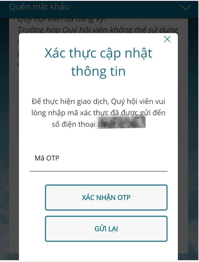 Số điện thoại đăng ký mã thành viên hiển thị trong ứng dụng Vietnam Airlines.