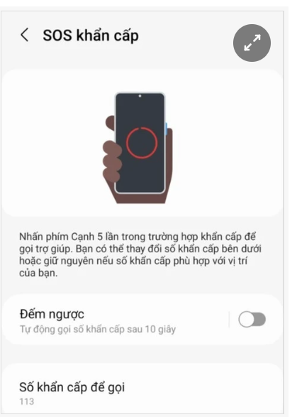 Tính năng SOS trên dòng điện thoại Samsung. Ảnh: Hoàng Thuận.