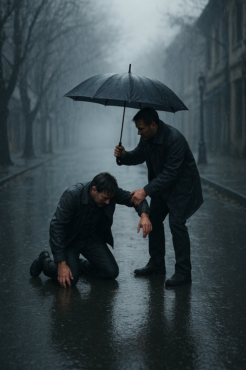 Anh ngồi lặng lẽ bên bàn nước trong căn phòng trọ nhỏ cuối hẻm, ánh đèn vàng nhạt và chiếc quạt kêu lạch cạch. Ngoài kia mưa lất phất. Hưng lục tìm danh bạ điện thoại — người từng là chiến hữu trong những bữa tiệc rượu, kẻ từng thề sống chết có nhau. Anh nhắn vài tin, gọi vài cuộc. Nhưng chẳng ai bắt máy.