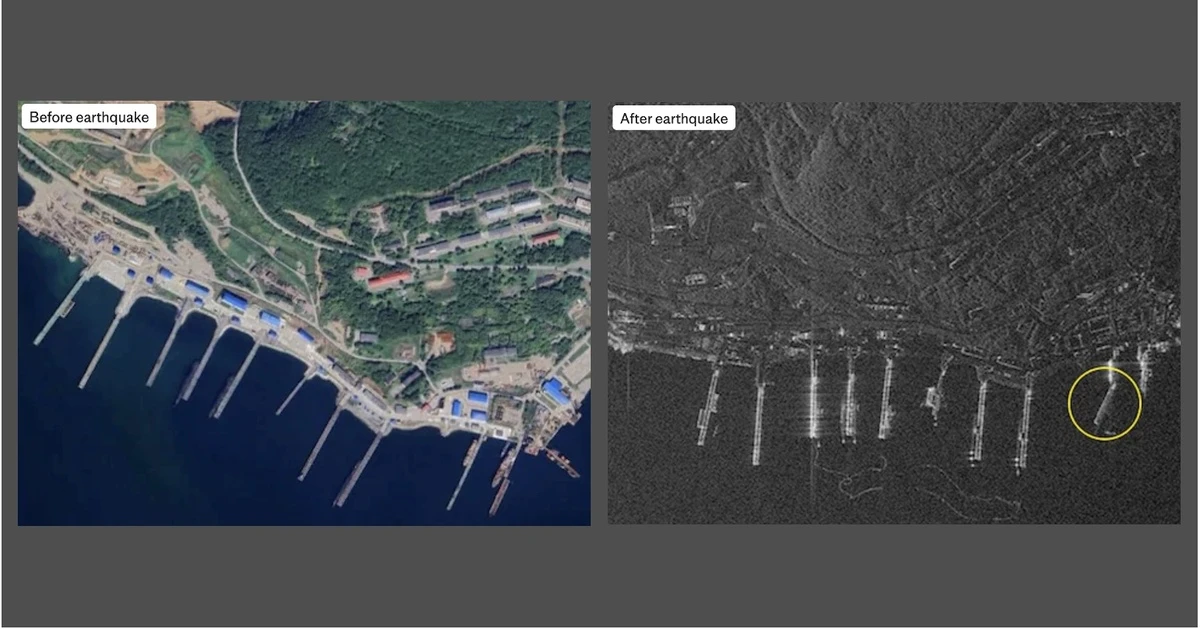 Theo các hình ảnh do vệ tinh Umbra Space chụp vào sáng 31/7 sau khi sóng thần xảy ra và được báo The Telegraph đăng tải hôm 1/8 cho thấy các đợt sóng này được cho là đã ập trúng vào căn cứ Hải quân Rybachiy, nơi đặt phần lớn tàu ngầm hạt nhân của Hạm đội Thái Bình Dương của Liên bang Nga.