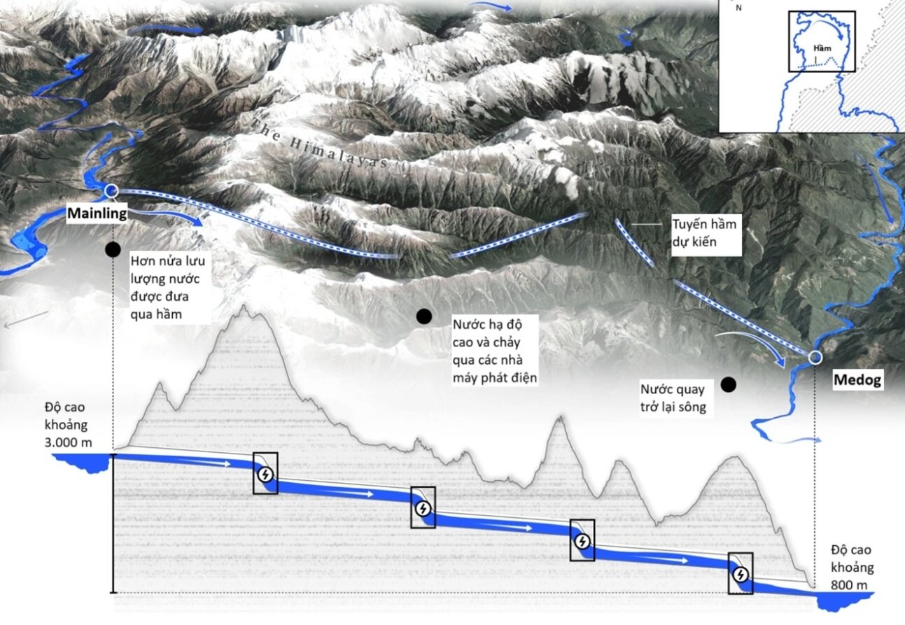 Ởkhu vực dự kiến xây nhà máy, sông Yarlung hạ độ cao tới 2.000 m chỉ trong khoảng 50 km độ dài, đem lại tiềm năng xây đập lớn. Nước sẽ được dẫn qua hầm và chảy qua năm nhà máy phát điện. Trong quá trình này, dòng nước sẽ được nắn thẳng so với dòng chảy tự nhiên của sông.