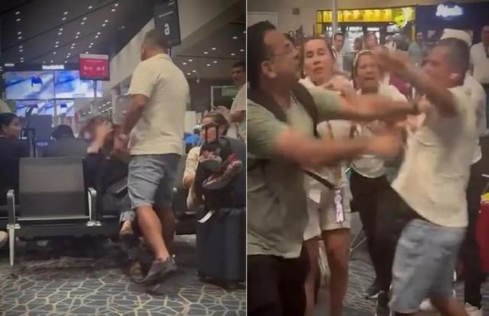 Người đàn ông tức giận tát vào mặt một người phụ nữ vì từ chối nhường chỗ tại nhà ga sân bay Colombia, gây ra một cuộc ẩu đả lớn khi những người chứng kiến chạy đến bảo vệ cô.