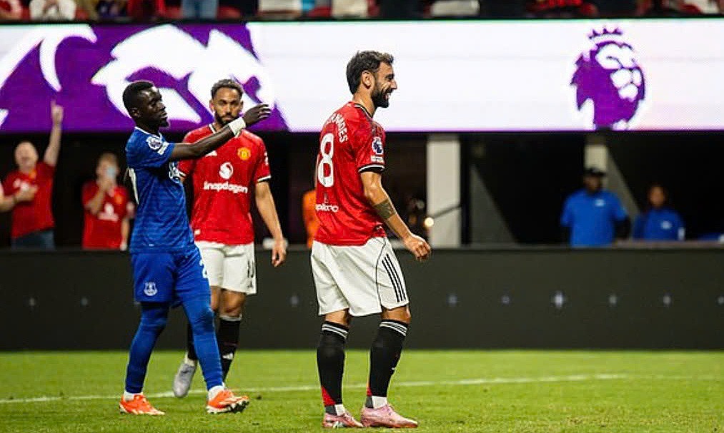 Trong lúc Everton phản công, Fernandes và Ndiaye liên tục đẩy vào ngực nhau, khiến cả hai phải nhận thẻ vàng. Còn Amad đổ gục xuống sân sau khi đá phản lưới nhà, dù anh đã cố phá bóng ra ngoài.