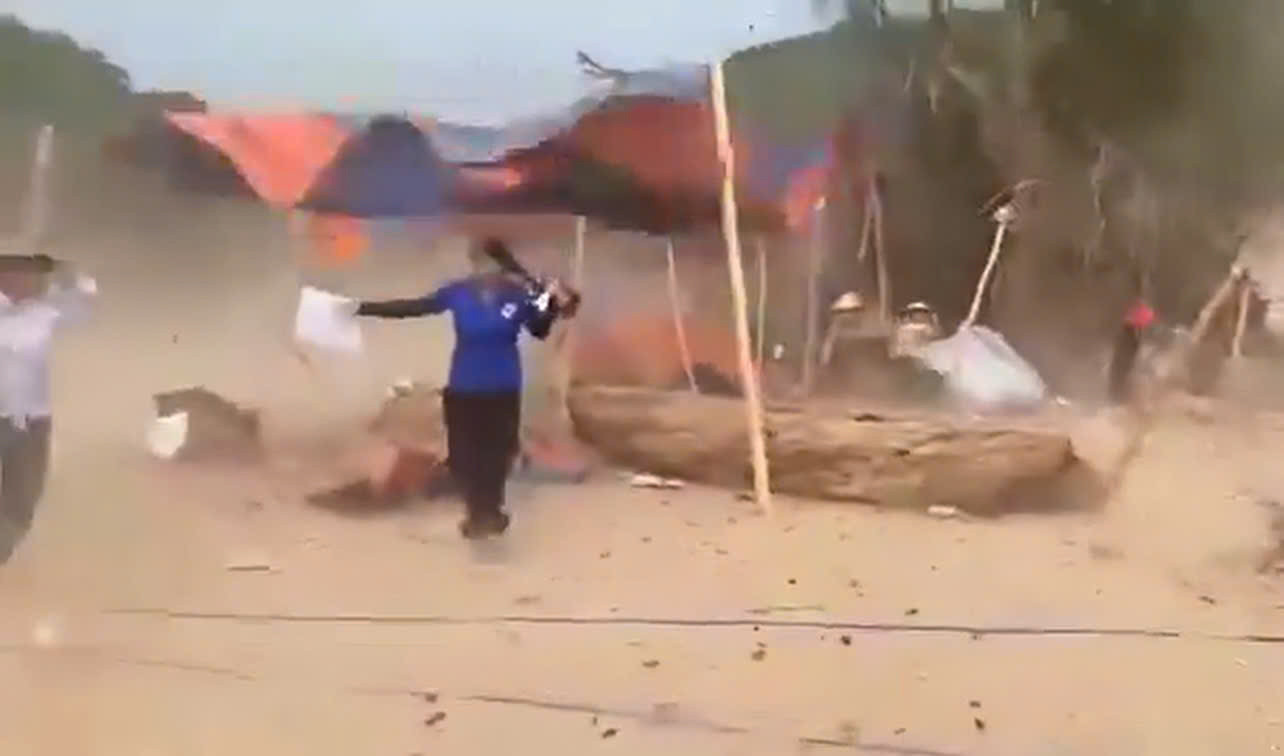 Hình ảnh người dân tháo chạy khi xuất hiện gió lốc. Ảnh cắt từ clip