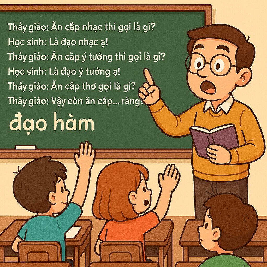 Ăn cắp thơ gọi là gì? Học sinh: Là đạo thơ ạ!