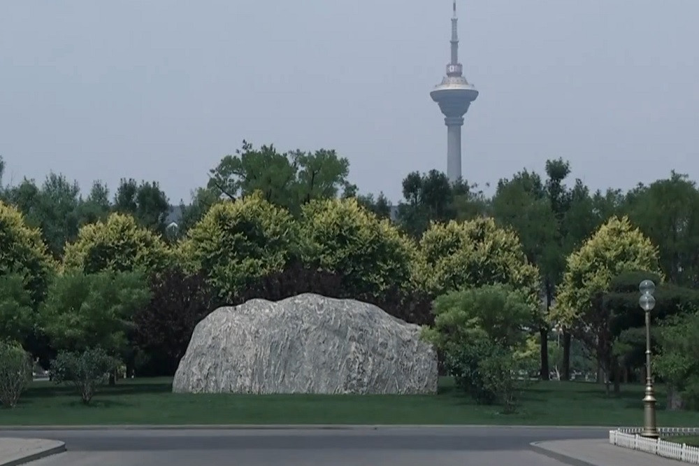Tảng đá phong thủy Hoàng cho đặt để thay hòn đá "hung khí". Ảnh: CCTV1