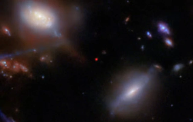 Hình ảnh cho thấy thiên hà JADES GS-z13-1dưới dạng chấm đỏ thông qua lăng kính của kính viễn vọng James Webb