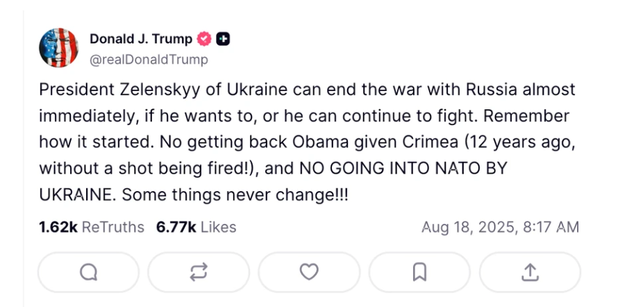 Tối 18/8, Tổng thống Mỹ Donald Trump đăng loạt bài viết trên nền tảng Truth Social, chỉ trích truyền thông, một thượng nghị sĩ Dân chủ và cả Tổng thống Ukraine Volodymyr Zelensky sau hội nghị thượng đỉnh với Tổng thống Nga Vladimir Putin hôm 15/8 tại Alaska, tờ Hill đưa tin.
