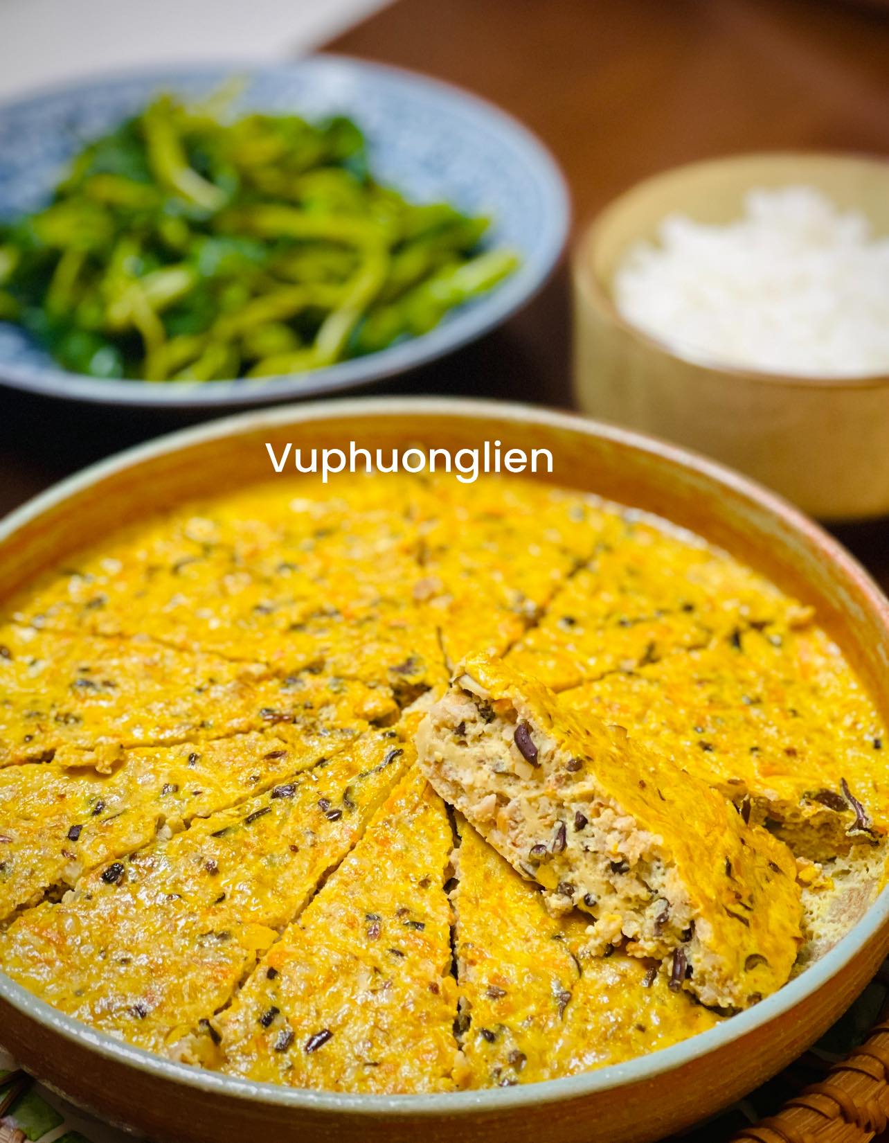 Thành phẩm món chả trứng hấp mắm tép tơi xốp, mềm mọng, béo ngậy, ăn cùng cơm trắng rất ngon.