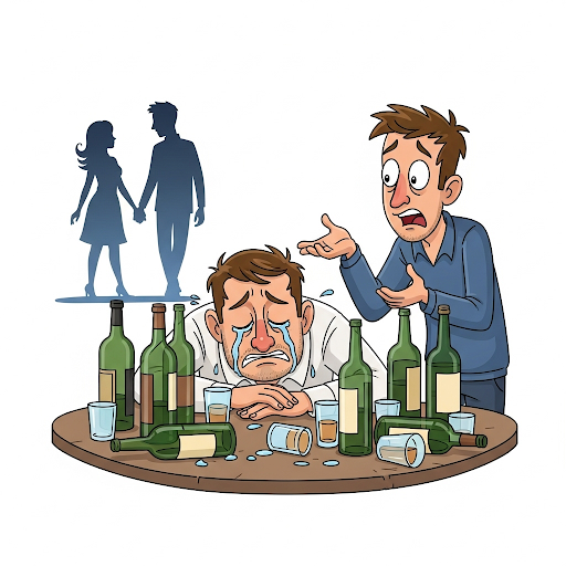 Một người đàn ông ngồi trong quán rượu, uống hết ly này đến ly khác. Một người bạn của anh ta tình cờ bước vào và hỏi: