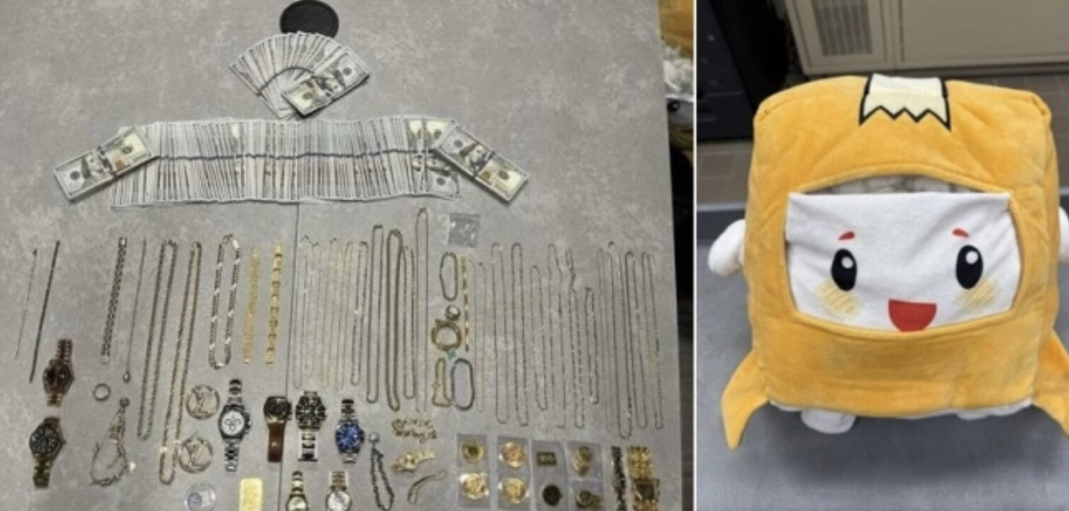 Theo cảnh sát, số hàng hóa bị đánh cắp được giấu bên trong thú nhồi bông của hai đứa trẻ, ước tính tổng trị giá tới 400.000 USD.