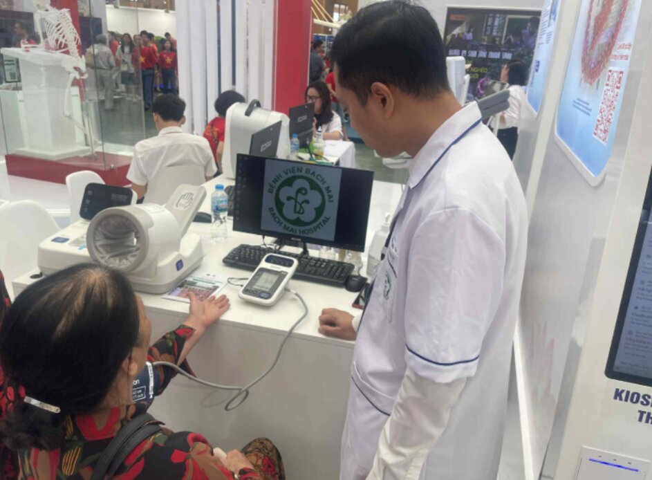 Tại không gian trưng bày của Bộ Y tế, Bệnh viện Bạch Mai trình diễn ứng dụng trí tuệ nhân tạo (AI) trong chẩn đoán sớm ung thư phổi.