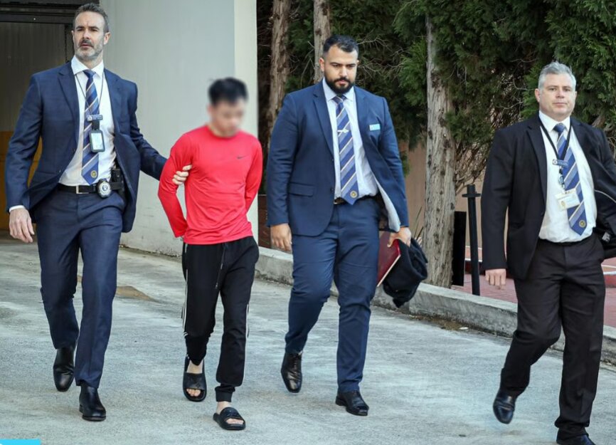 The Anh Nguyen bị áp giải ra xe cảnh sát sáng 28-8. Ảnh: Cảnh sát New South Wales