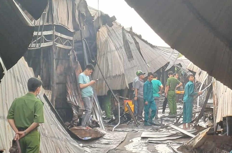 Hiện trường vụ cháy chợ Thanh Tùng.