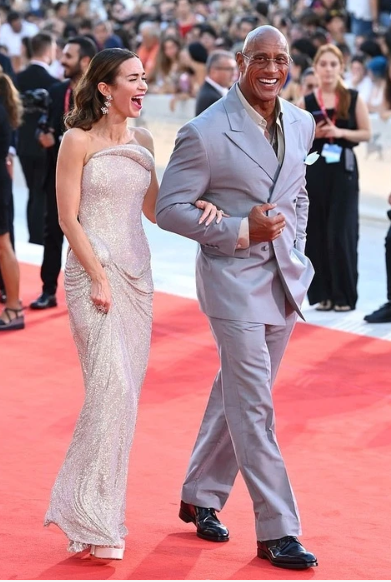 The Rock và Emily Blunt trên thảm đỏ LHP Venice. Ảnh: Shutterstock.