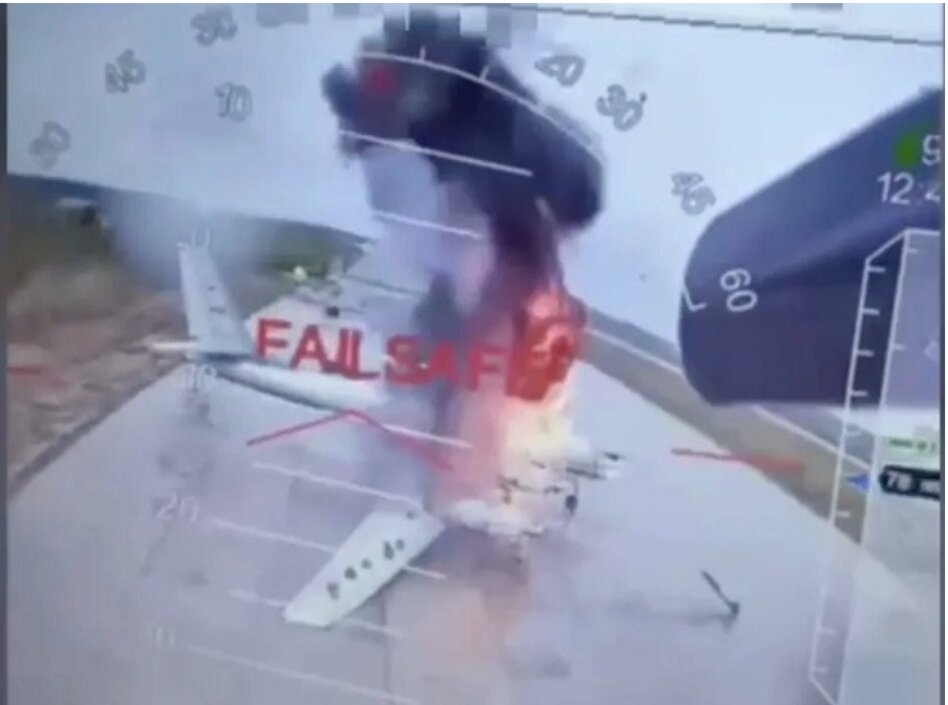 Hiện trường UAV Ukraine tấn công máy bay Nga trong chiến dịch Mạng nhện. Ảnh: Business Insider