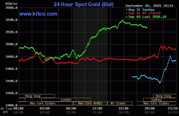 Chốt phiên giao dịch 2/9, giá vàng thế giới giao ngay tăng 58 USD lên kỷ lục 3.531 USD một ounce. Trong phiên, giá có thời điểm lên sát 3.540 USD.
