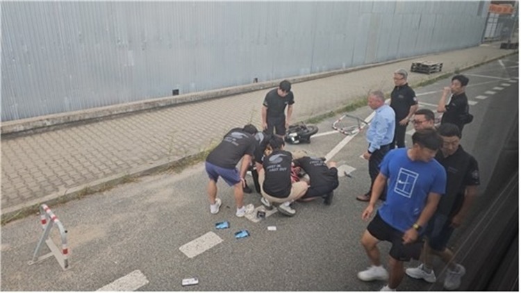 Trong ngày tập huấn thứ tư hôm 28/8, họ chứng kiến một phụ nữ trung niên ở Brno, Cộng hòa Czech, ngã xuống đường vì xe lăn điện mắc kẹt. Bà bị gãy khuỷu tay phải, hai lòng bàn tay trầy xước và nằm bất động trên đường.