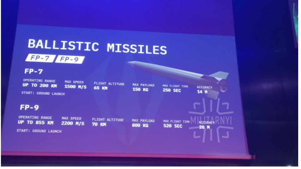 Fire Point giới thiệu 2 loại tên lửa đạn đạo mới là FP-7 và FP-9. Ảnh: Militarnyi