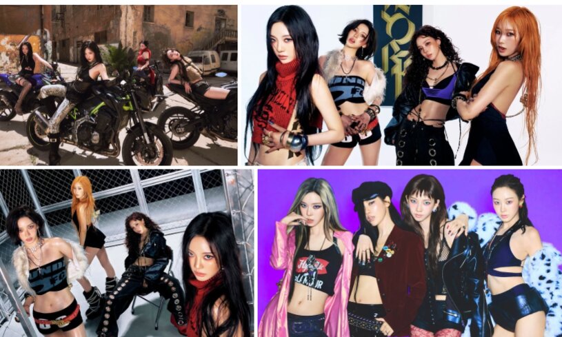 Trang phục và cách tạo dáng của aespa trong loạt ảnh mới gây tranh cãi. Ảnh: SM Entertainment.