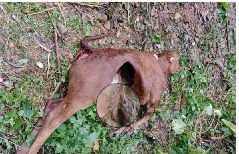 Xác bò bị mất phần nội tạng. ảnh: Thành Đạt.