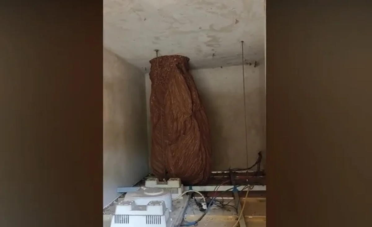 Mặc dù nghe thấy tiếng vo ve lạ trên trần từ vài ngày trước nhưng chủ nhà không để ý. Ban đầu, anh nghĩ chỉ là vài con côn trùng trú ngụ. Chỉ vài ngày sau khi mở trần để kiểm tra, anh không khỏi sững sờ khi thấy toàn bộ một góc nhà "mọc" tổ ong khổng lồ.